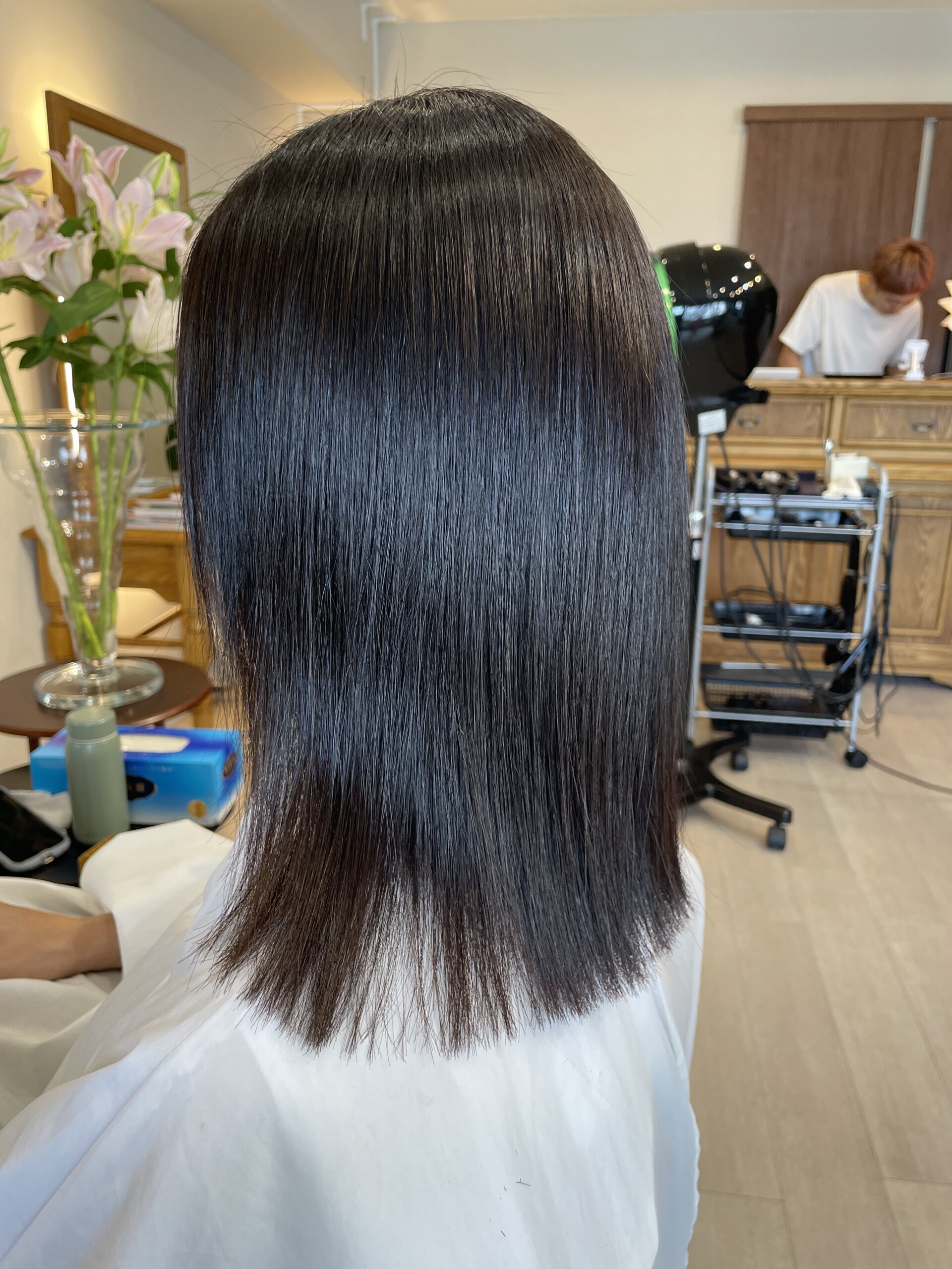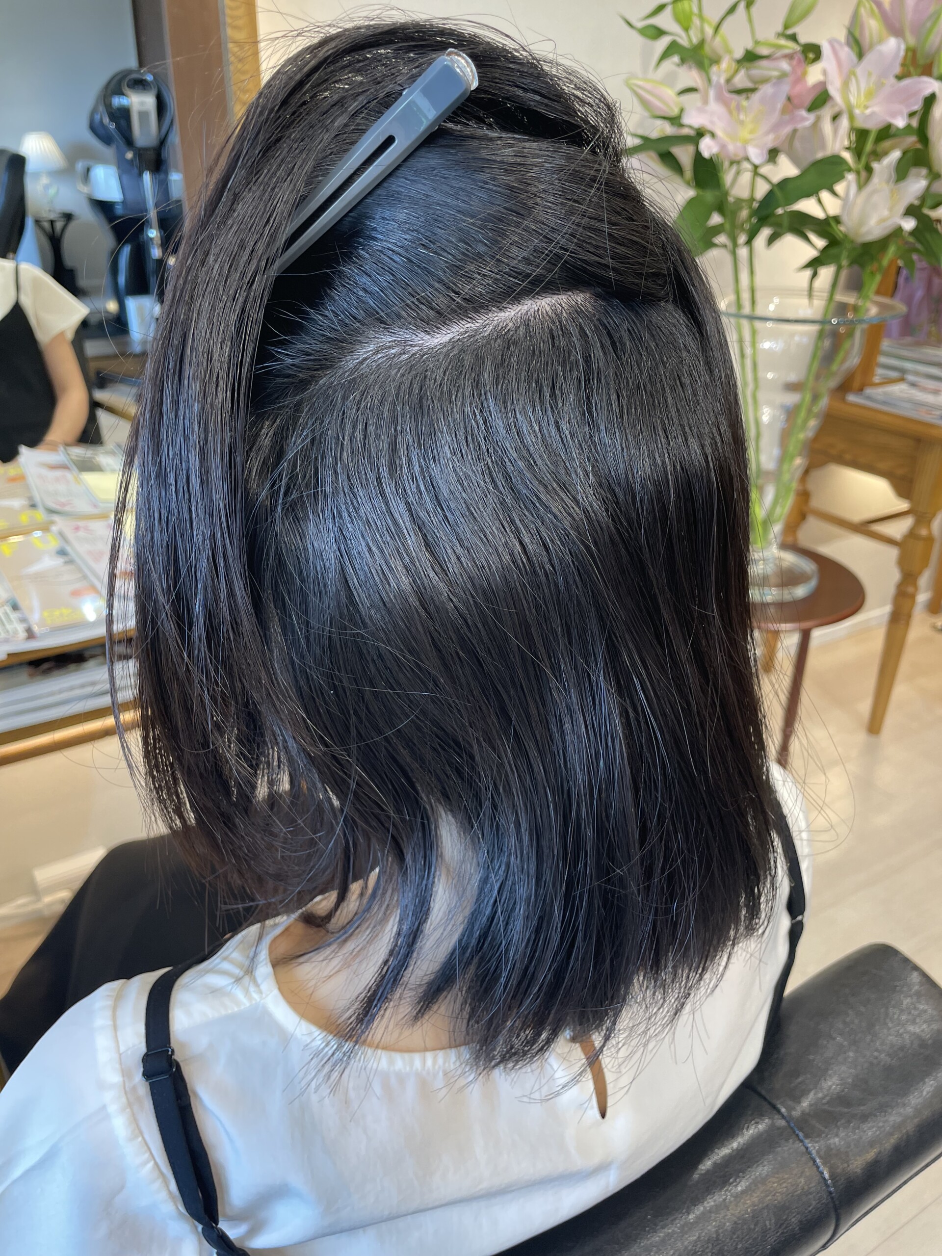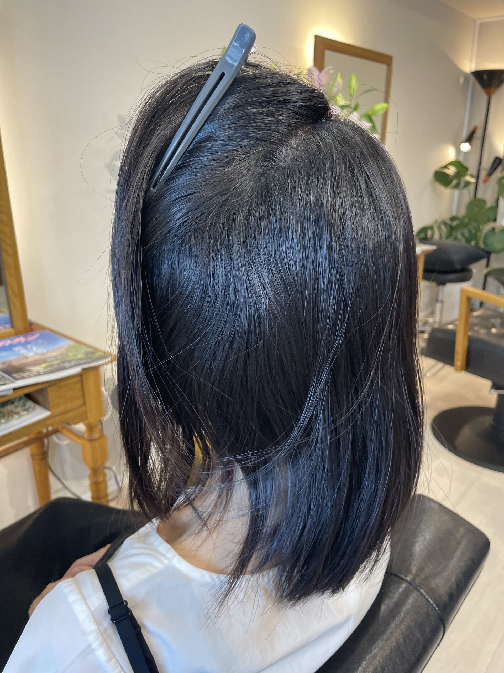 ・耳の下からかきあげながら、根元を中心に風を当てる