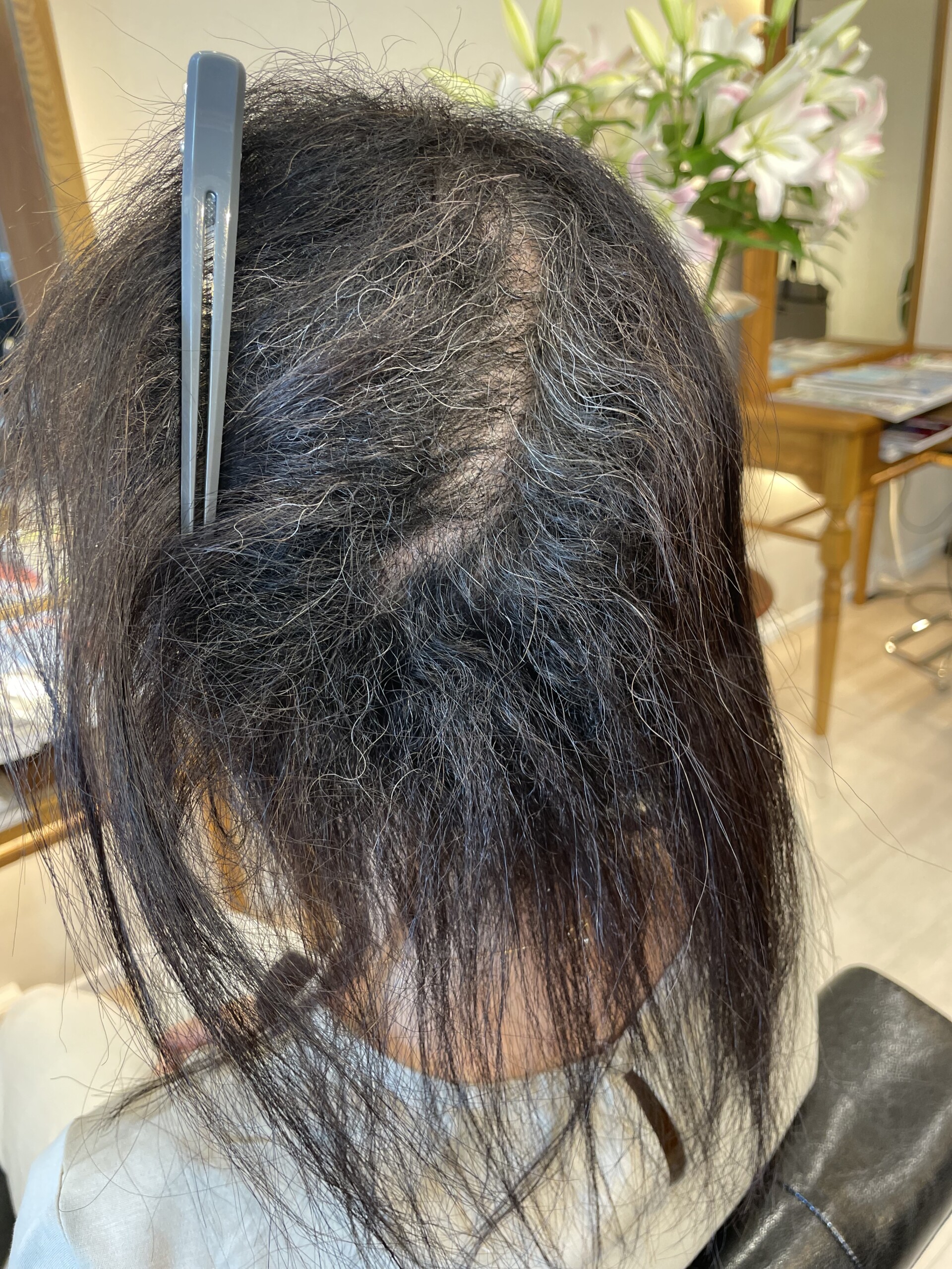 「パヤ毛」? ご来店ありがとうございました。皆様お元気そうで何よりです。季節の変わり目お体ご自愛下さい。今回はカラー+縮毛矯正・髪質改善の施術です。