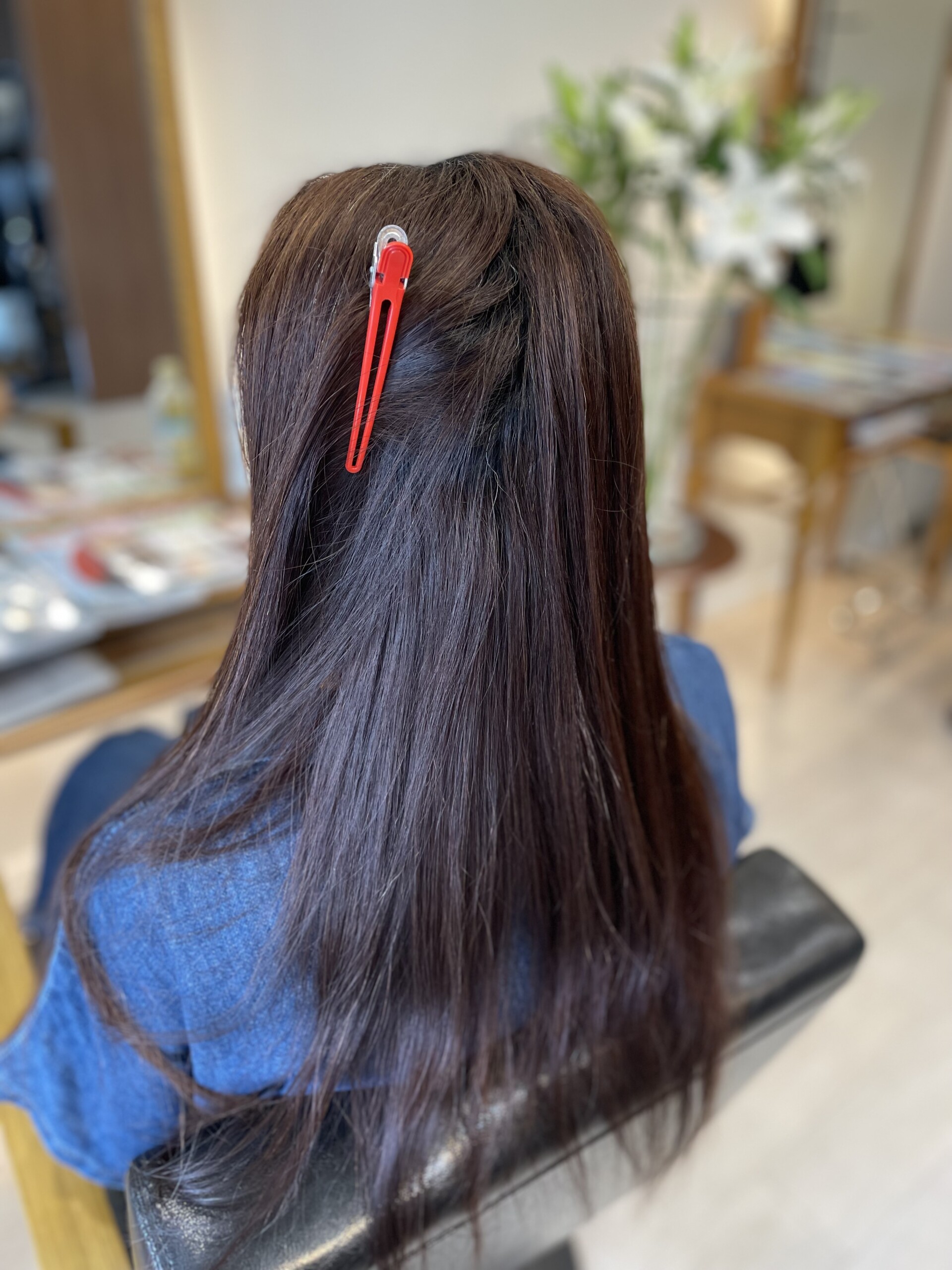 酸性縮毛矯正 5か月前に縮毛矯正ですが綺麗な髪のままです。今回はカラーのみでした。