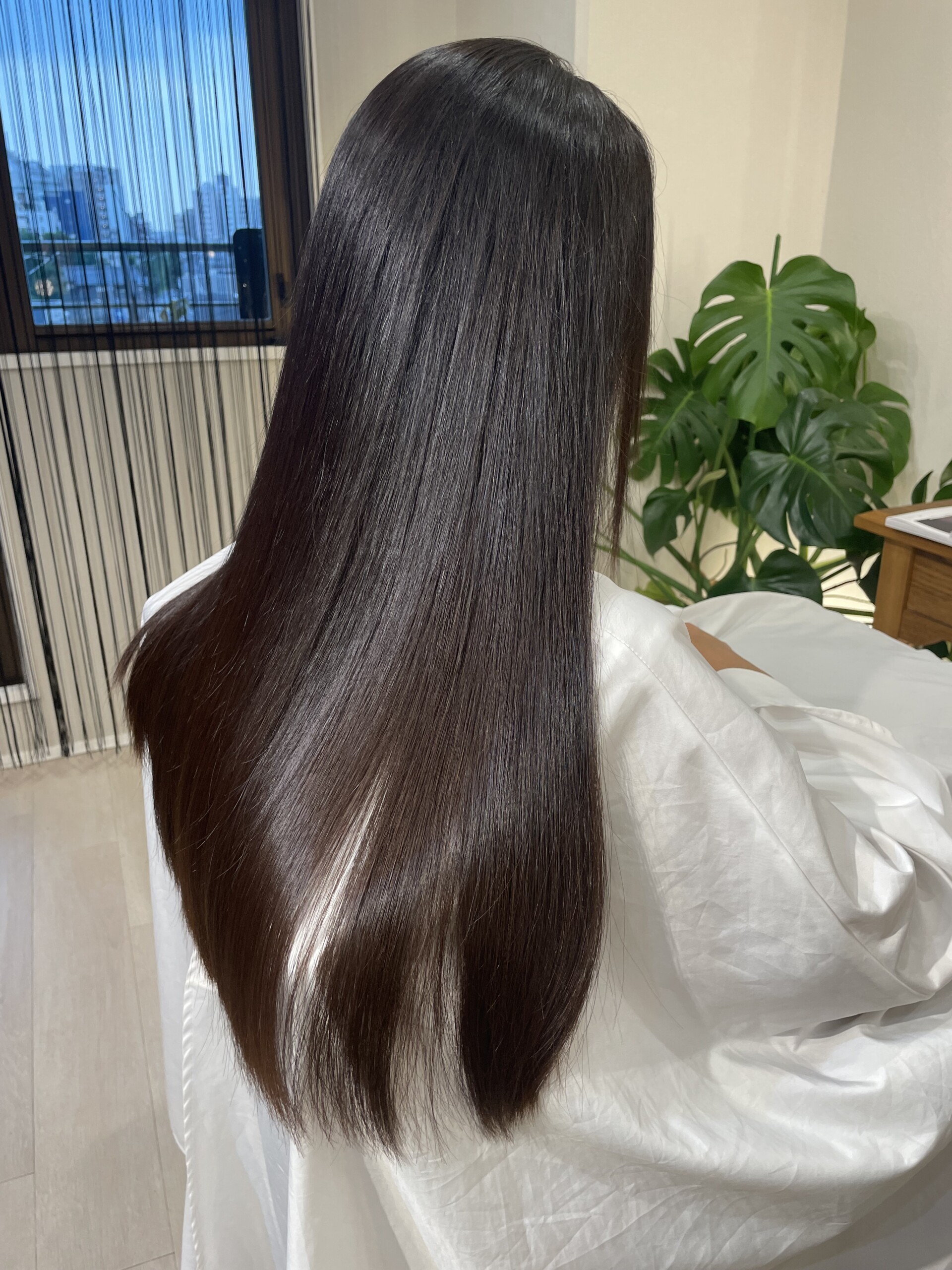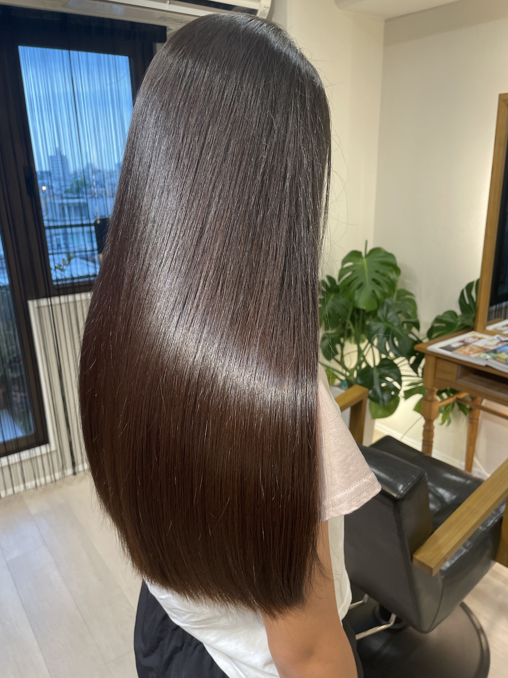 ⑤毛先を中心にトリートメントをつける。