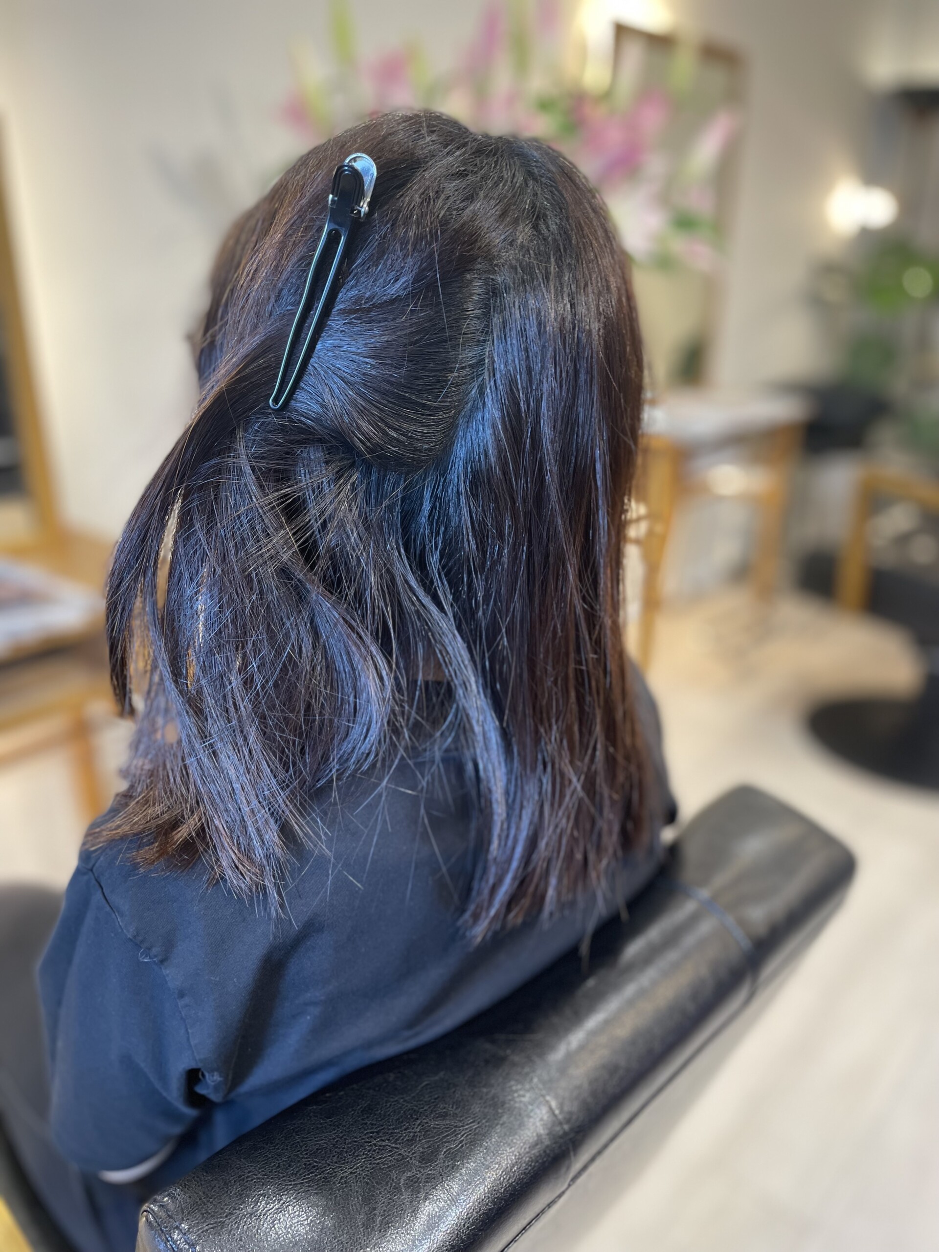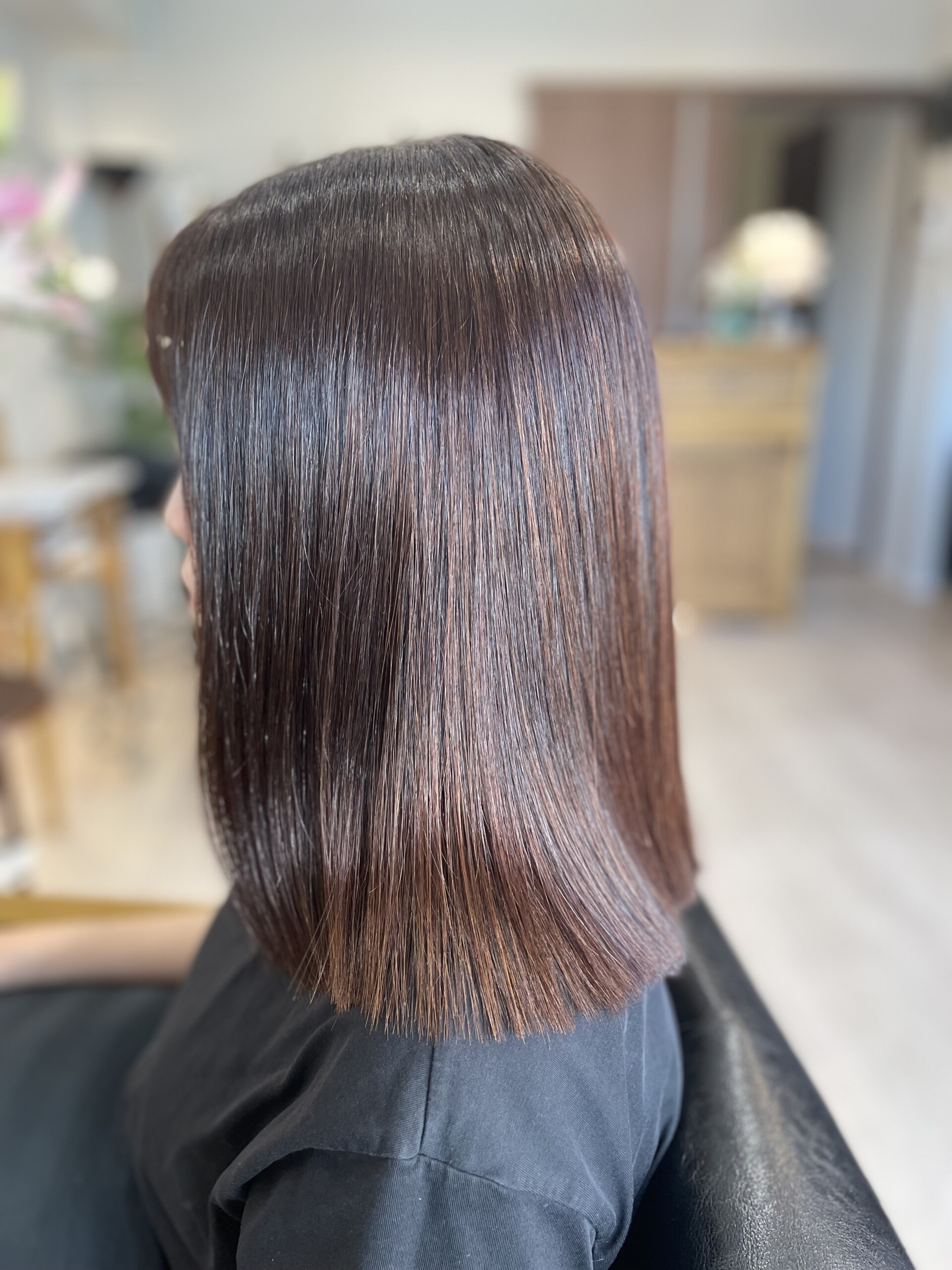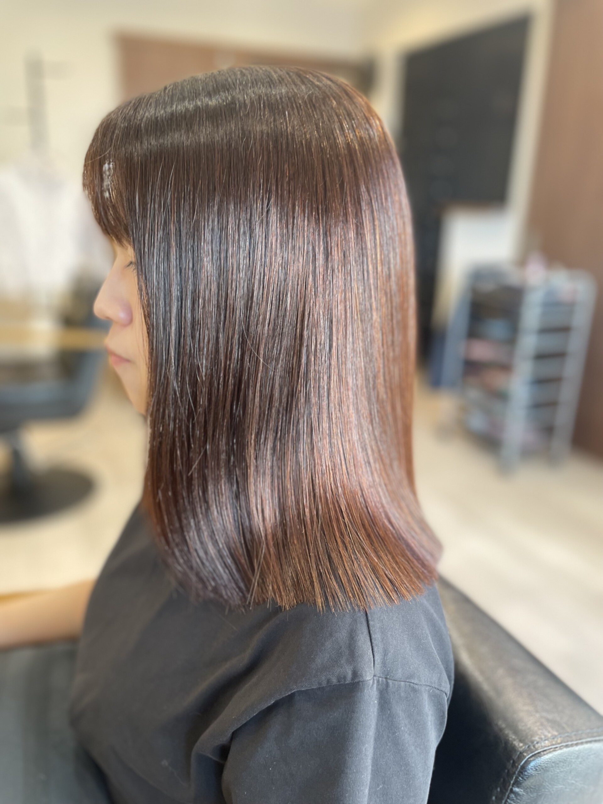 本日はカラー+縮毛矯正・髪質改善TRのお任せコース★施術より1か月以内メンテナンスプラチナトリートメント¥5500が無料です。ご利用お待ちしております。