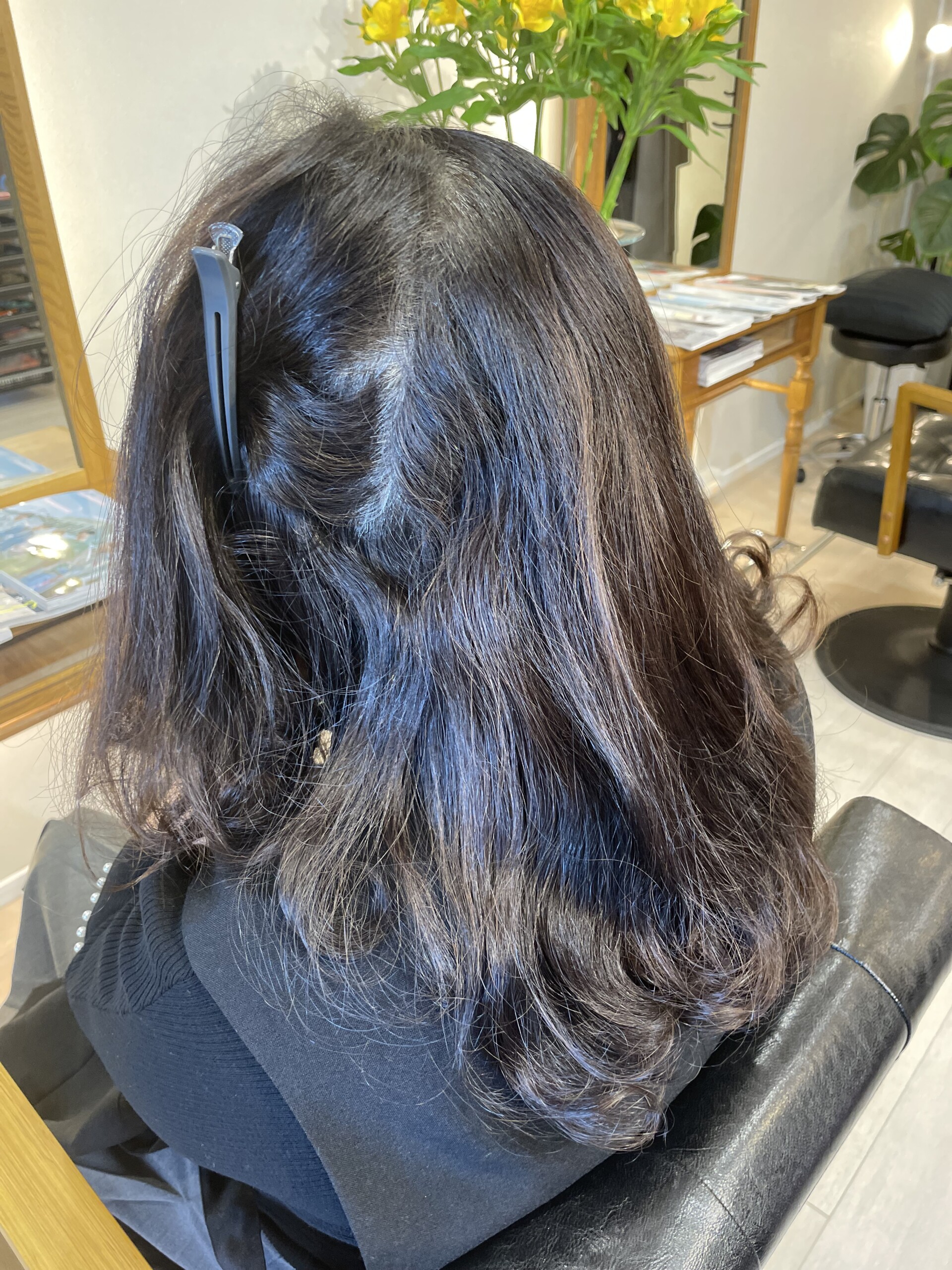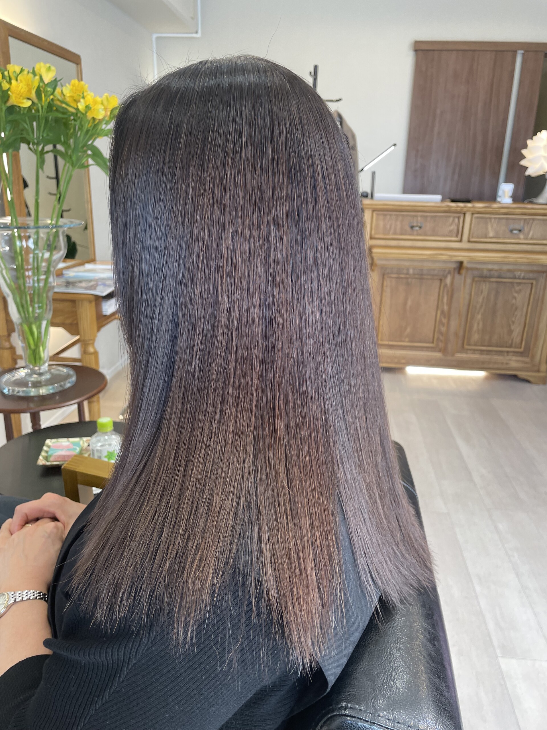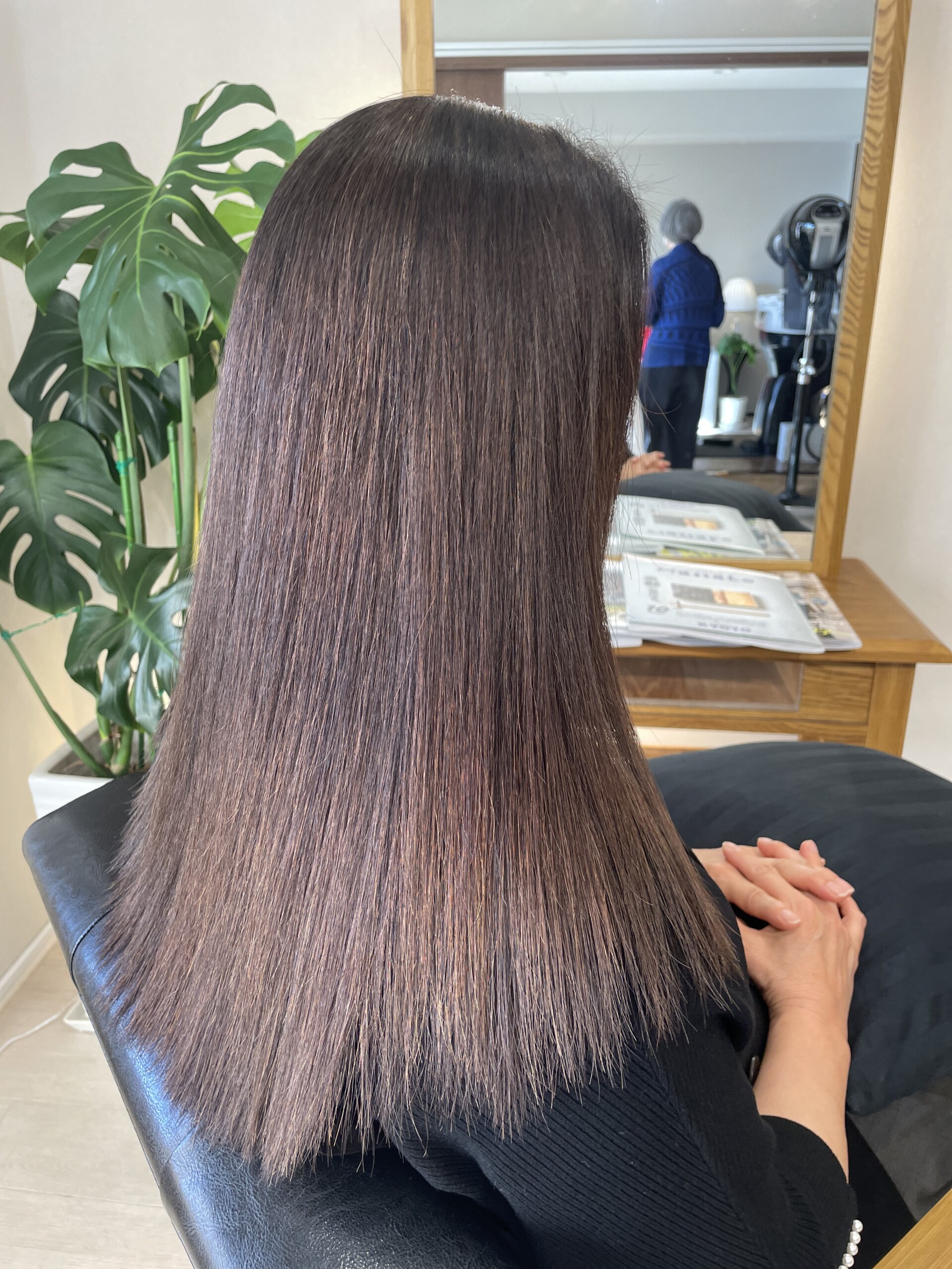 こちらのお客様は、他店で髪質改善3回施術、その後縮毛矯正1回した髪です。