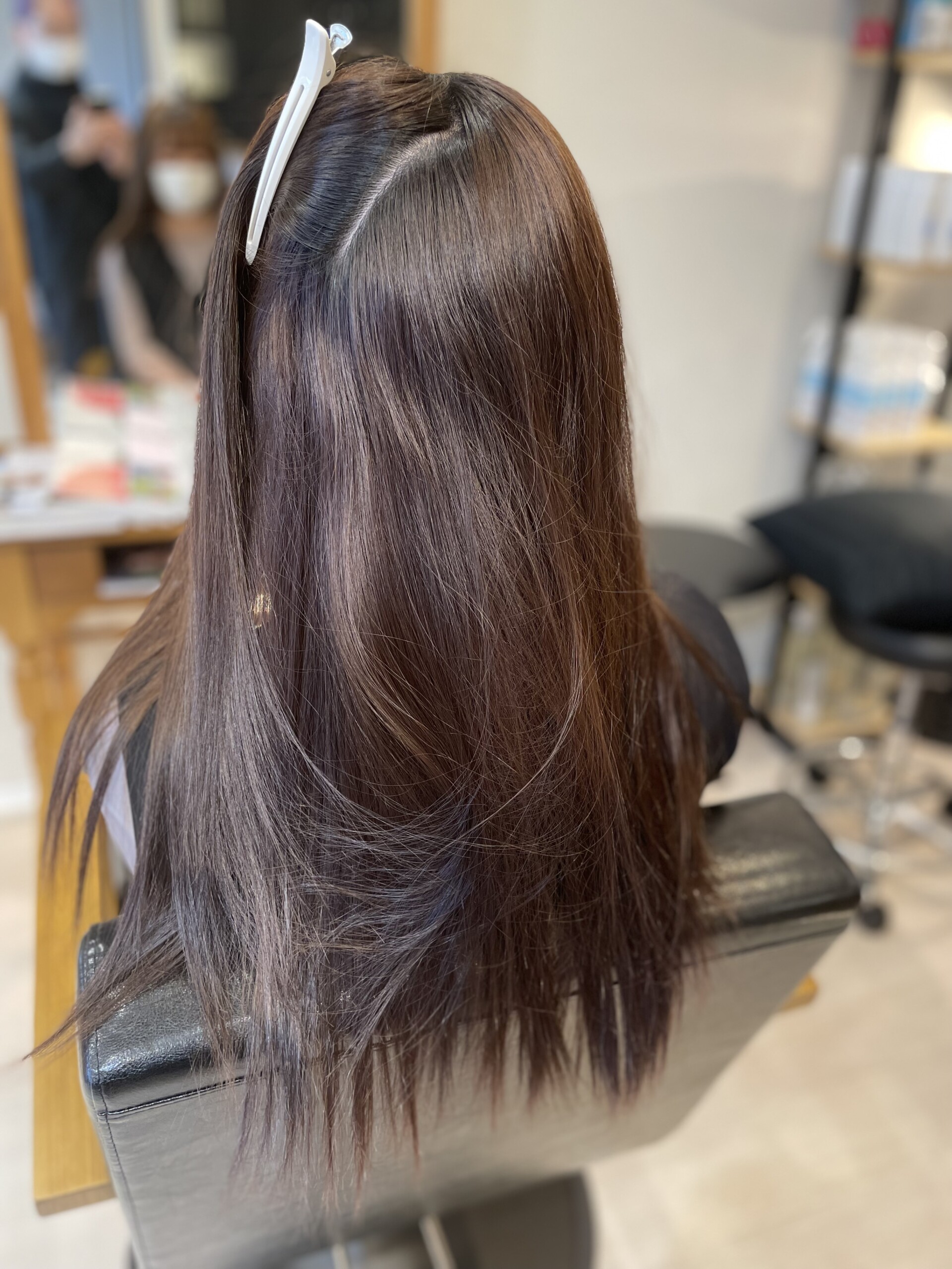 根元のうねりはドライヤーで直しておきます。